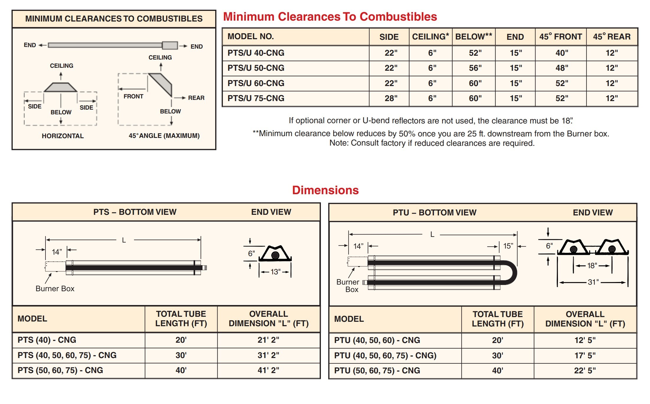 Gas Fired Products  CNG PTS/ U series heaters comply with these national codes and offers a solution with our CNG PTS/ U series heater in both straight & U-shaped configurations in 40, 50, 60, & 75,000 Btu capacities.