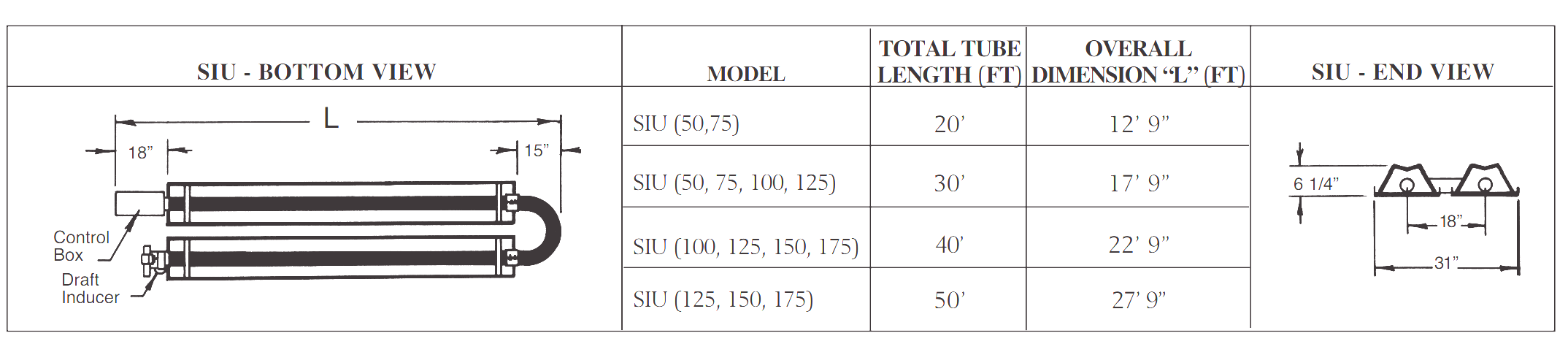 - SIU75-30 30' of Tube 17'9'' Long 75,000 BTUH LP Gas